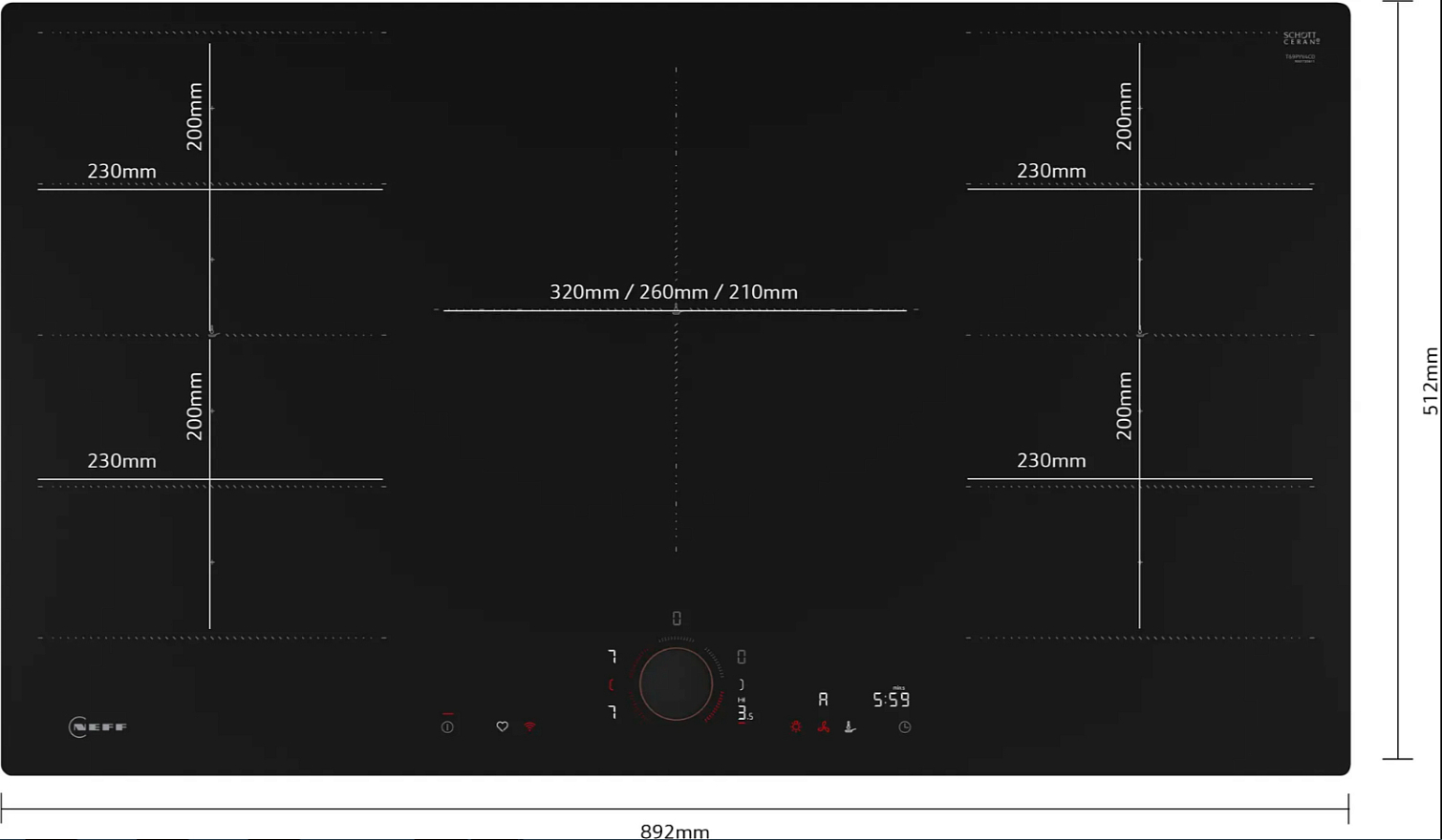 - Индукционная плита с 5 областями приготовления